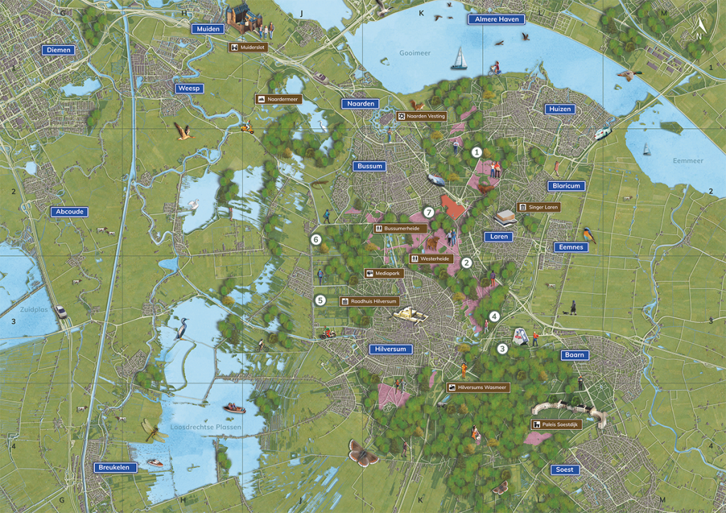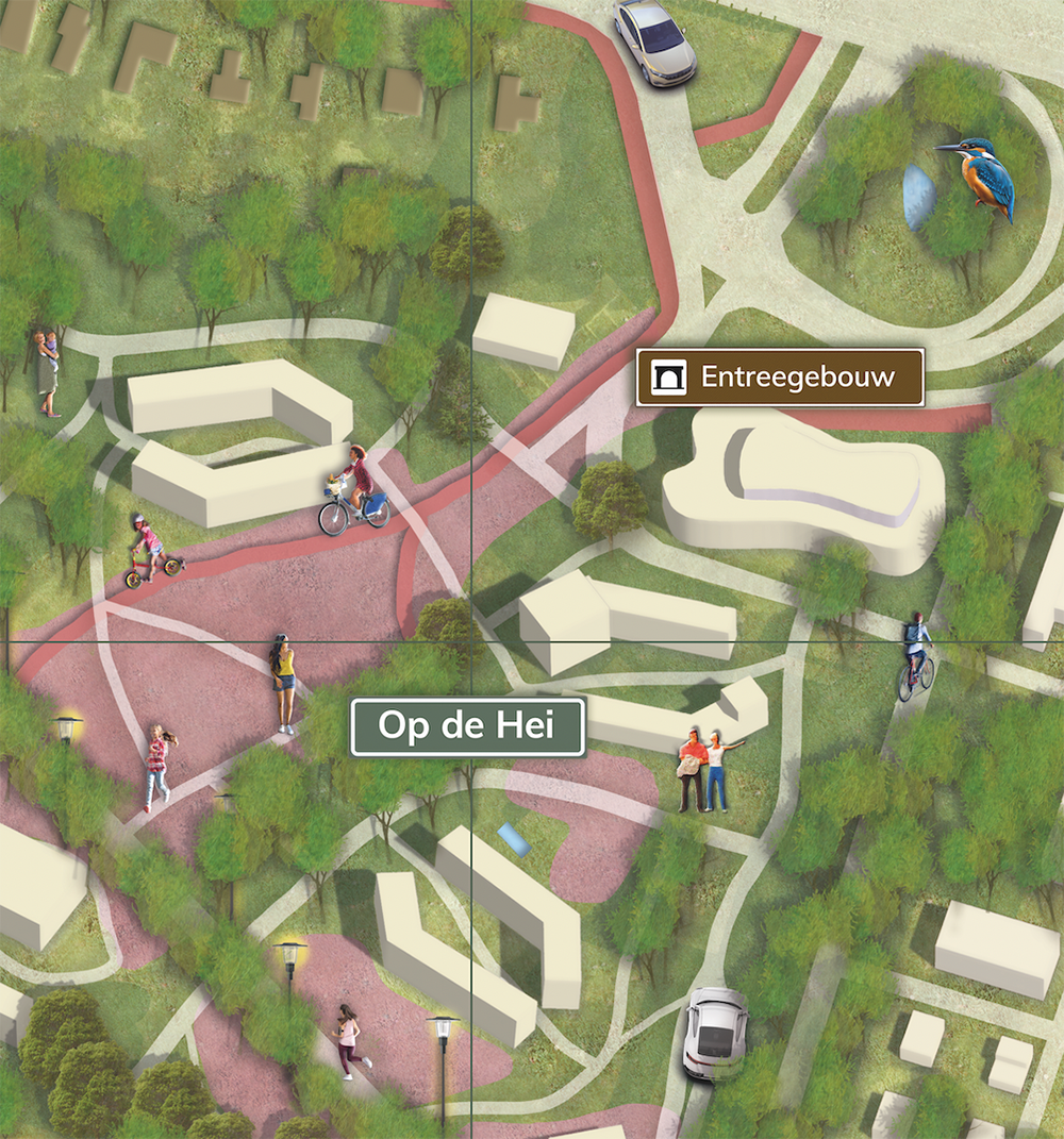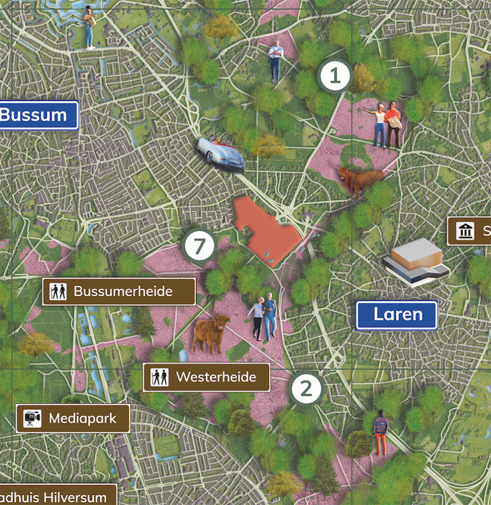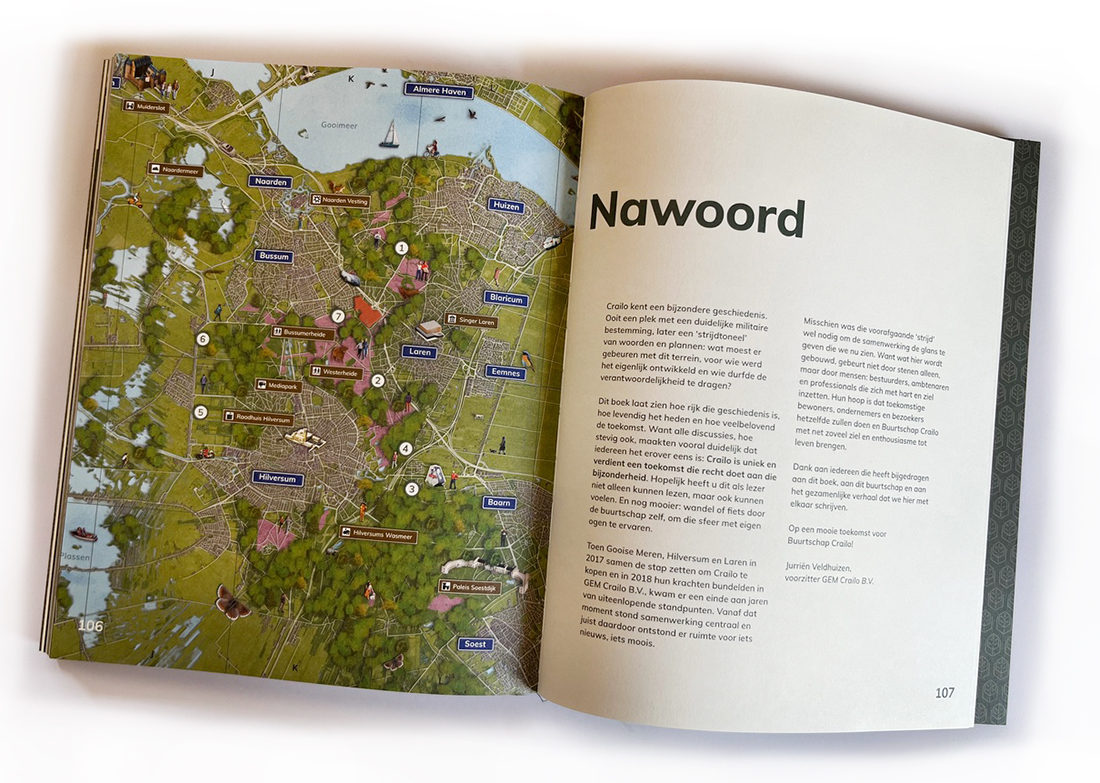 Geïllustreerde plattegrond voor boek “Thuis in Crailo” nieuwe woonwijk in het Gooi