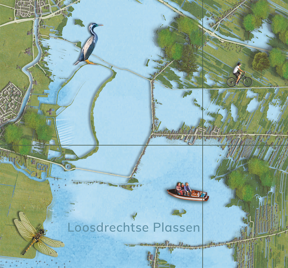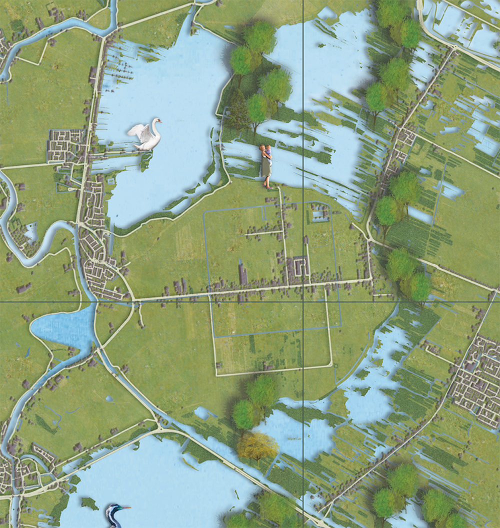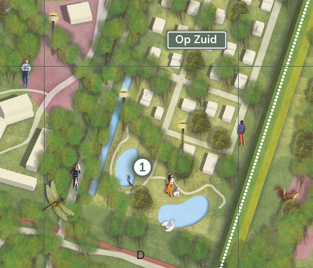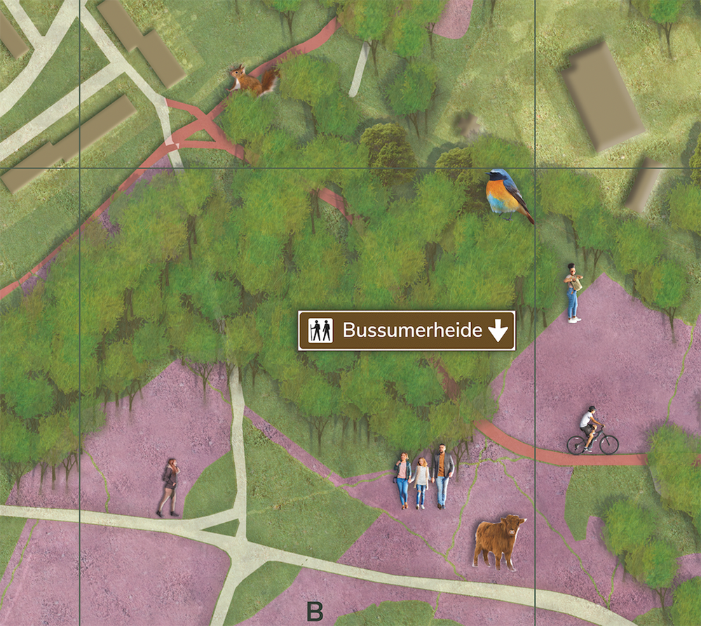 Geïllustreerde plattegrond voor boek “Thuis in Crailo” nieuwe woonwijk in het Gooi